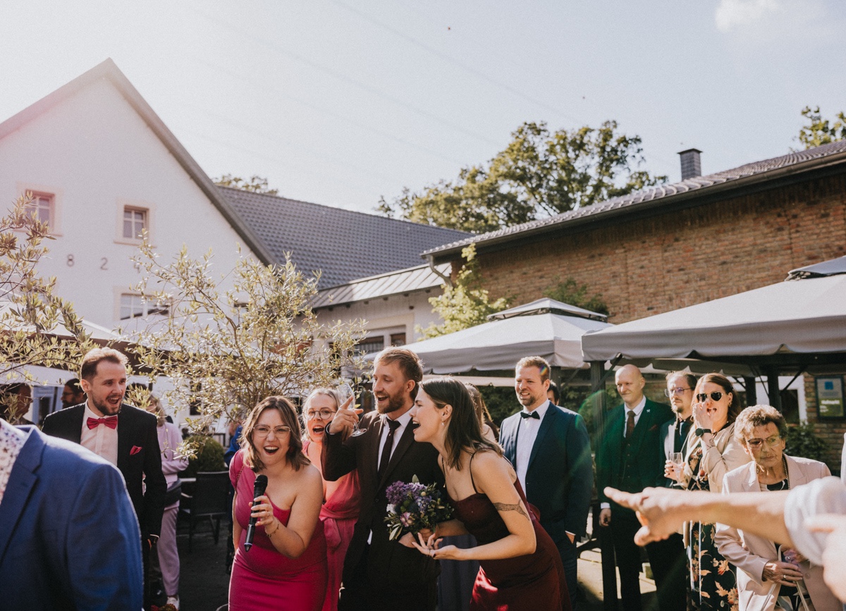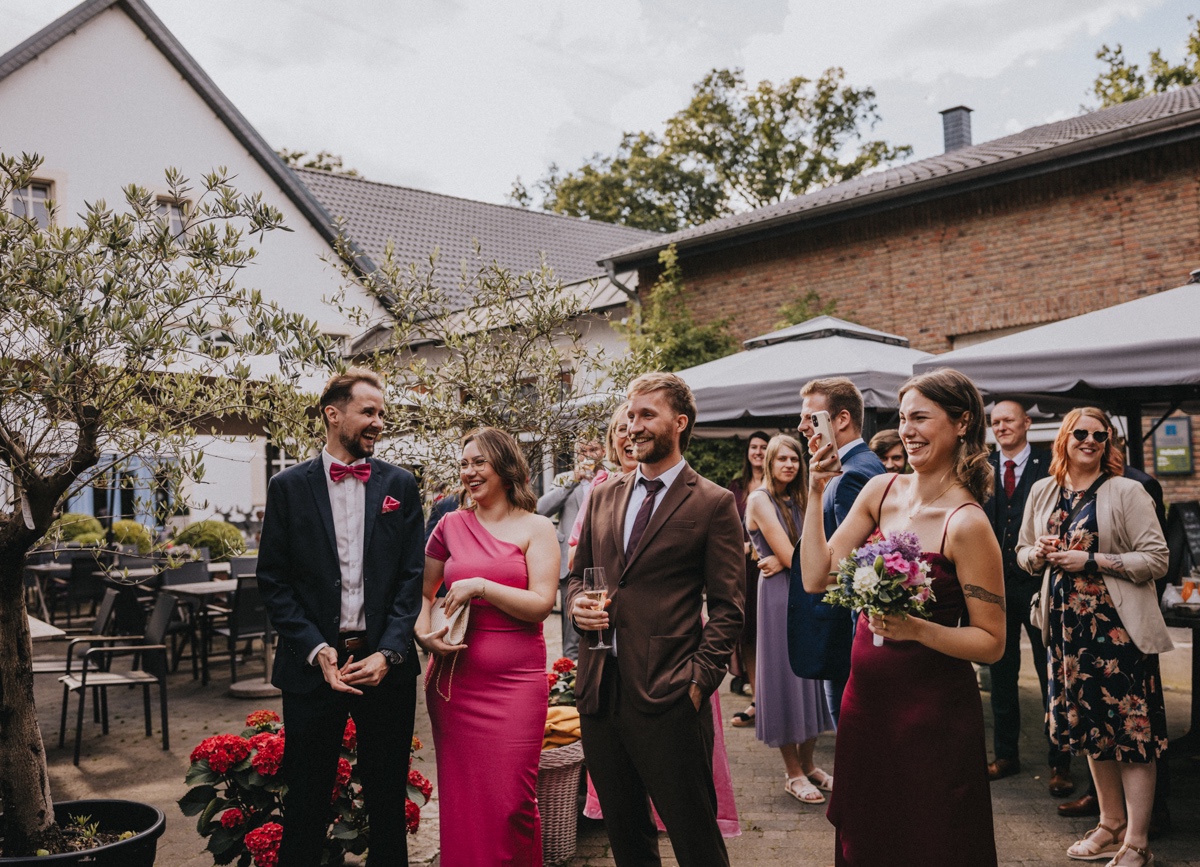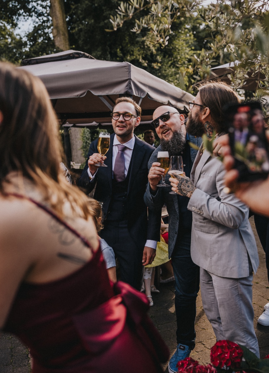 Nach einer wundervoll emotionalen Trauung in der St. Martinus im alten Dorf in Herten & einem kleinen Umtrunk direkt an der Kirche ging es nach Bottrop zum Schmücker Hof, wo schon am Nachmittag ausgelassen getanzt & gefeiert wurde.